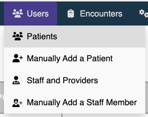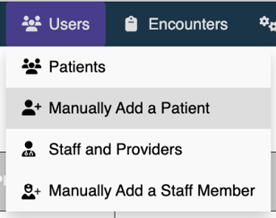 Click on the Users tab and select Manually Add a Patient.