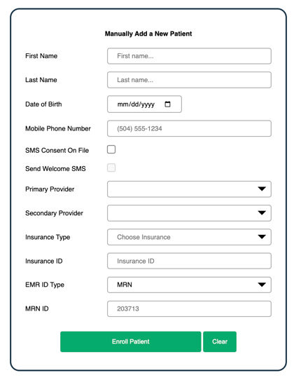 Select EMR ID Type if applicable and input the MRN ID