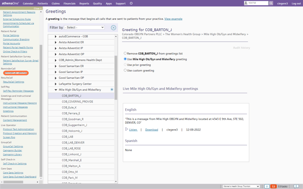 This is where you'll set up your greetings, the messages that begin all outgoing calls to patients.
