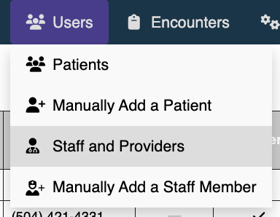 Click on the Users tab and select Staff and Providers.