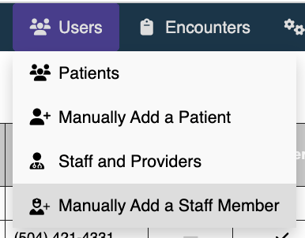 - Click on the Users tab and select Manually Add a Staff Member.